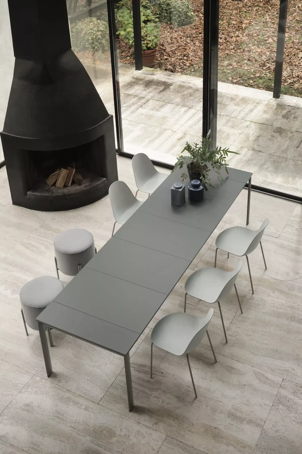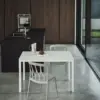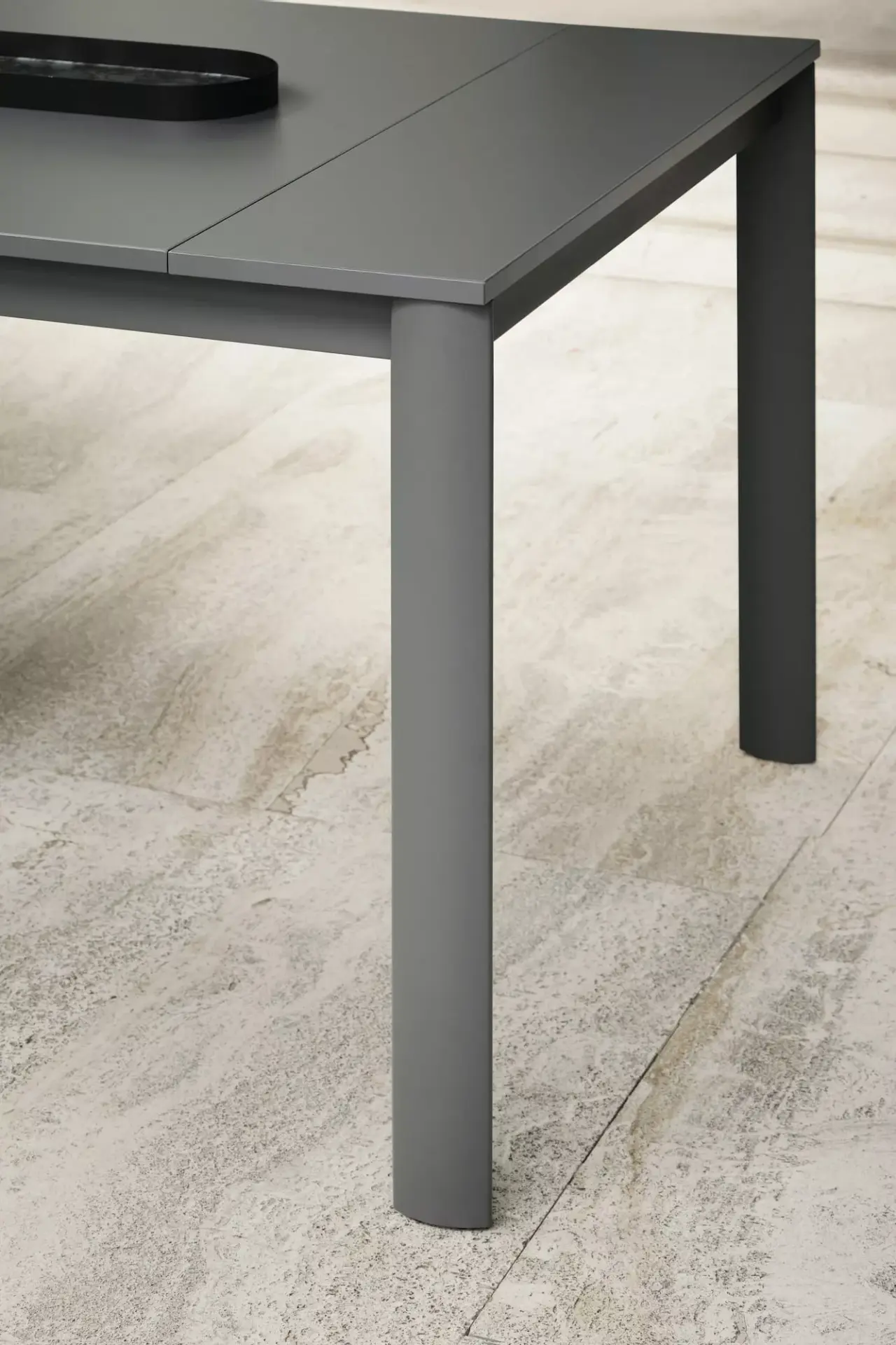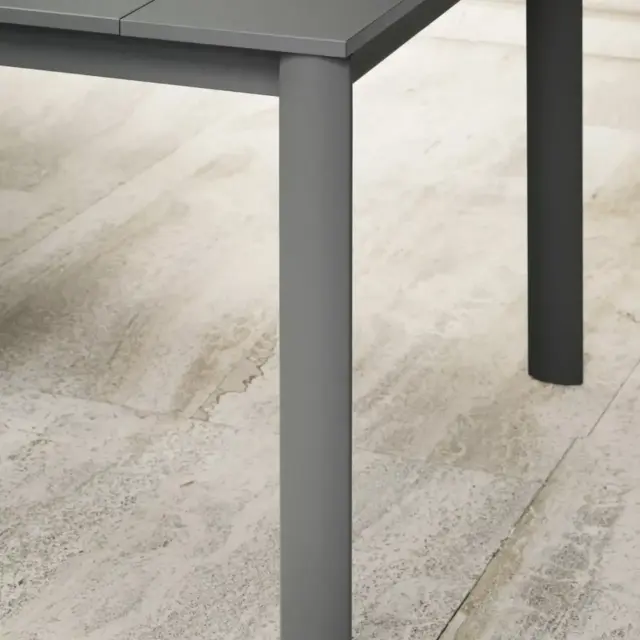 Tavolo consolle con struttura in Acciaio laccato, piano e prolunghe in melaminico.