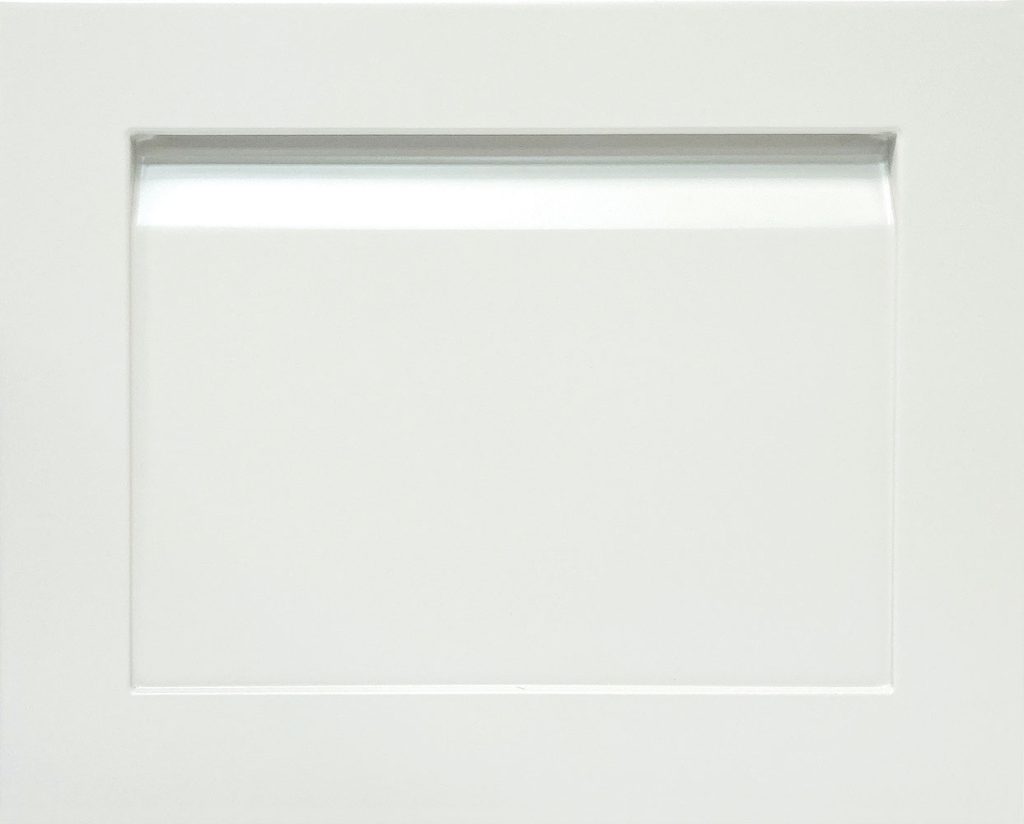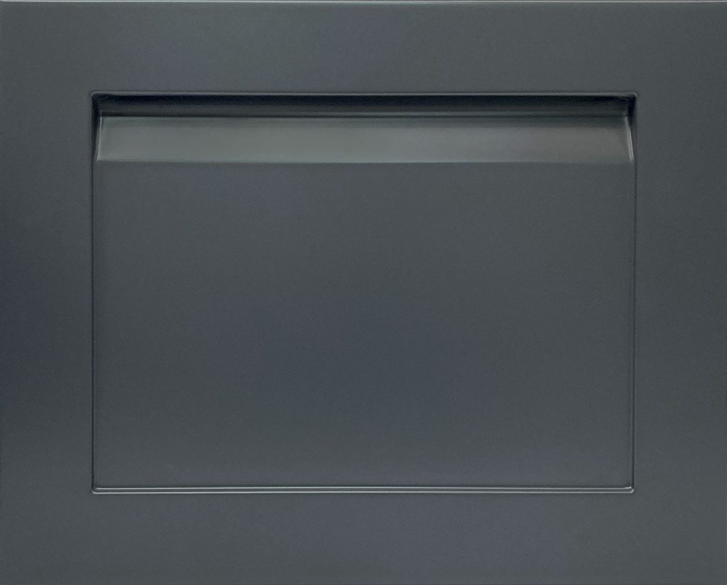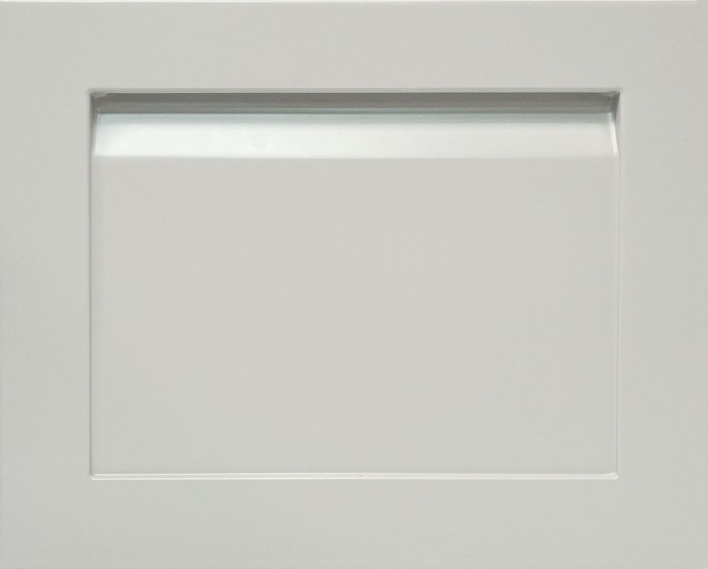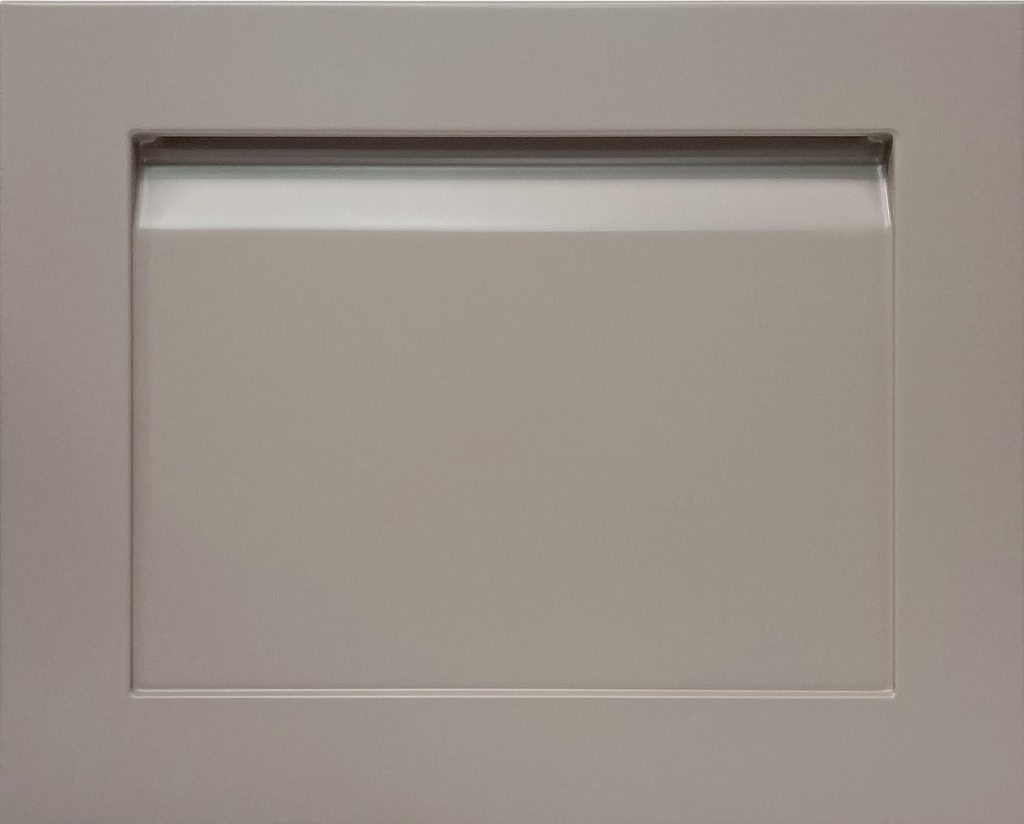 Il programma della cucina Petra prevede ante con telaio spessore 22 mm in MDF CARB II FSC con presa maniglia integrata con pantografatura, verniciatura poliestere con finitura opaca.