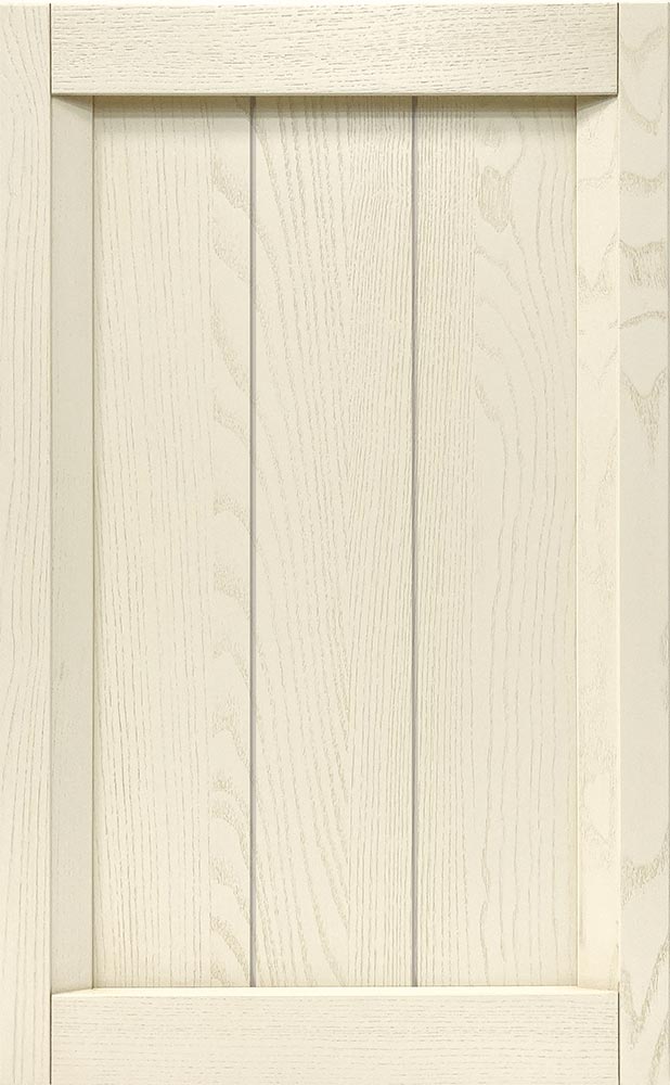Il programma della cucina Saona prevede ante a telaio in frassino con doghe pantografate e presa maniglia sul traverso, spessore 22 mm.