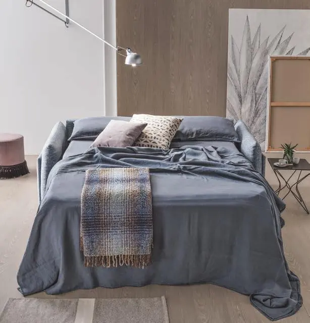 Il bracciolo è un morbido cuscino incassato nella struttura ed è un elemento molto confortevole anche quando il divano diventa letto.