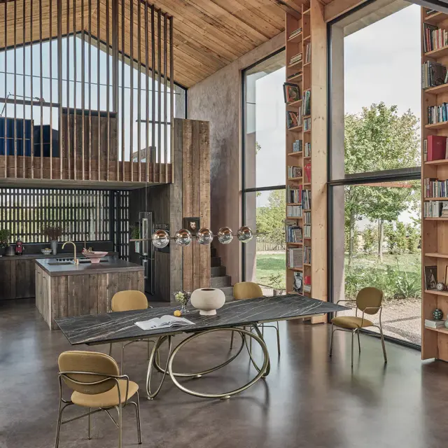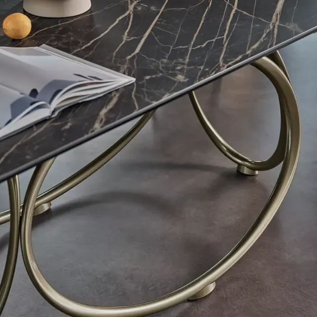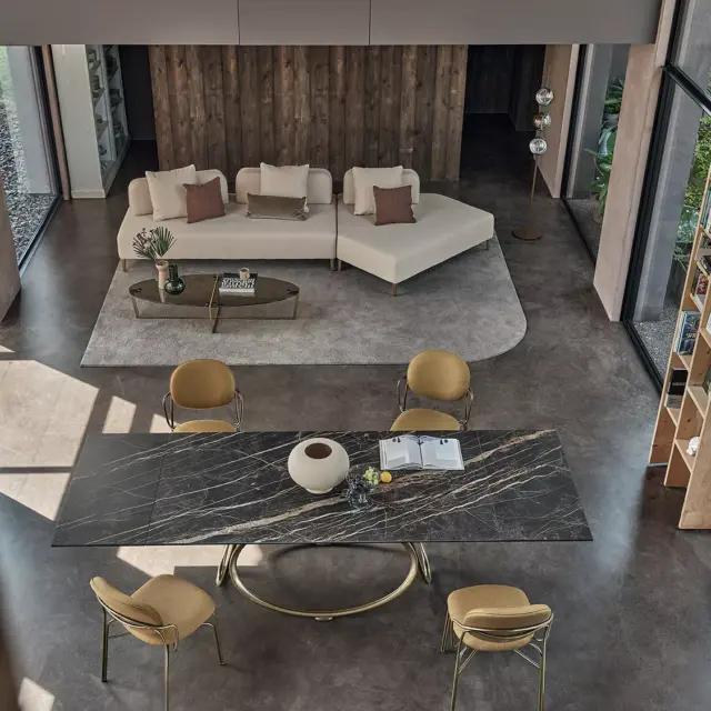Tavolo fisso e allungabile con struttura in acciao laccato e piano in legno Impiallacciato, legno massellato, legno massello, cristallo, cristallo antigraffio, SuperCeramica e SuperMarmo.