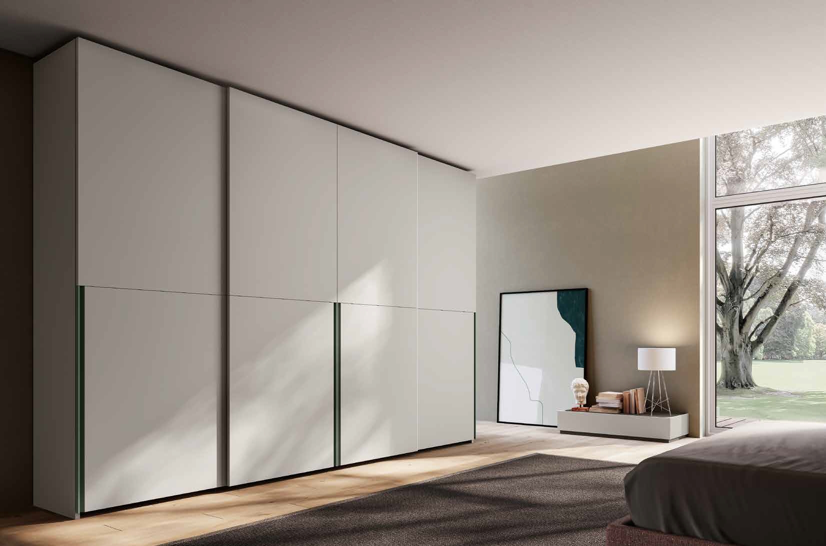 La scorrevolezza fluida delle ante completa l’esperienza d’uso, rendendo questa composizione una scelta di design e comfort.